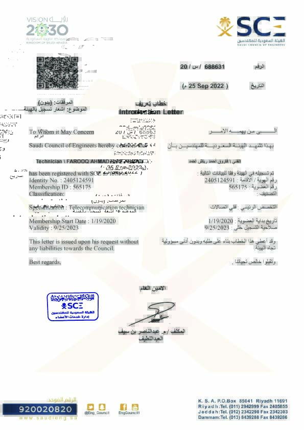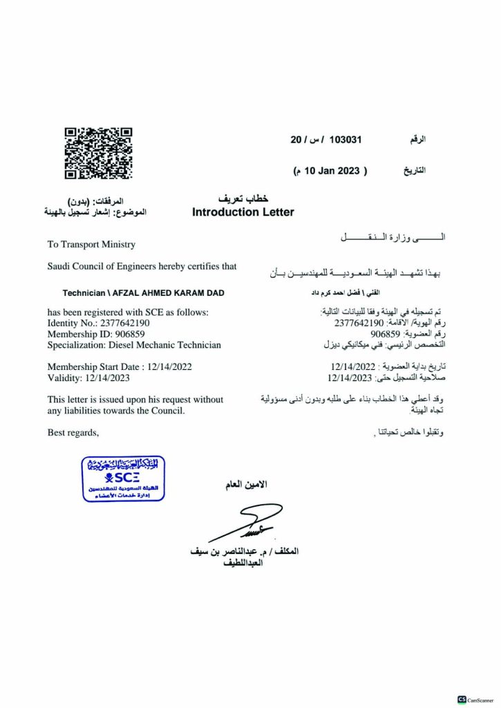 Saudia Council of Engineers Accepted Diploam